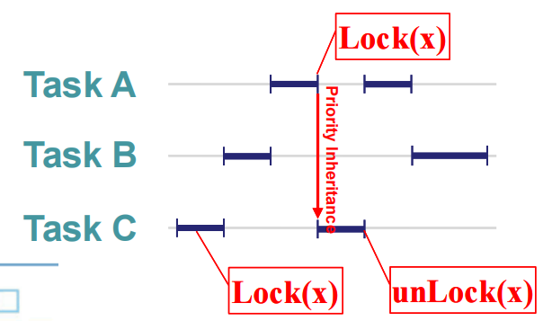 - 优先级继承:当一个高优先级进程需要去获取锁时,将持有该锁的进程的优先级置为高优先级进程的优先级