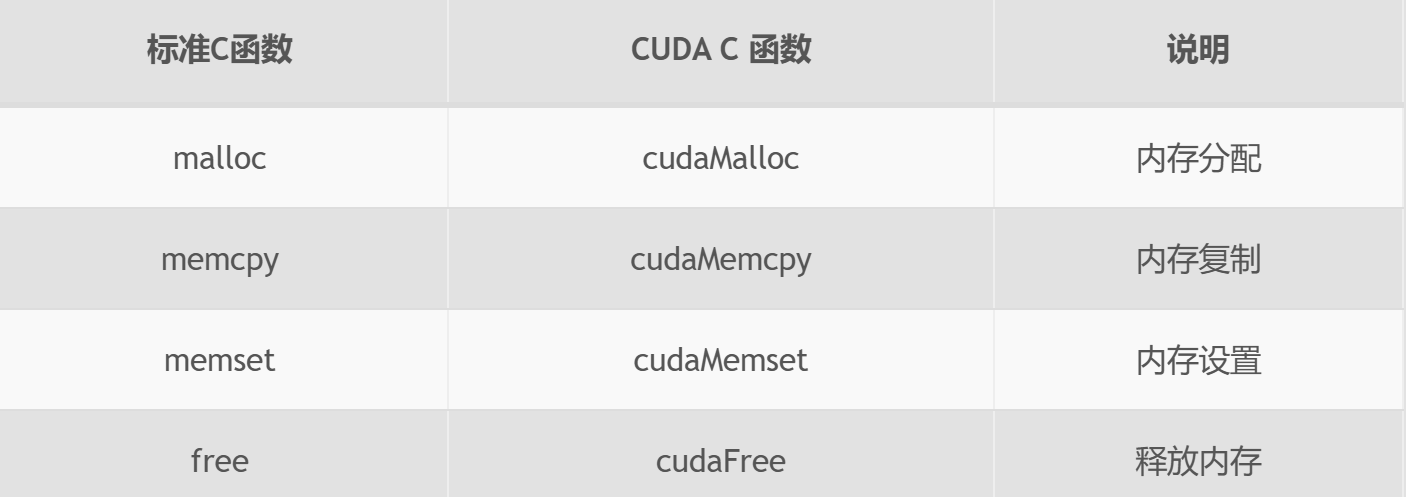 我们知道c语言标准库提供了malloc,memcpy等函数对内存进行操作,这些函数只能操作Host的内存。如果想要操作设备上的内存,需要使用CUDA提供的API。