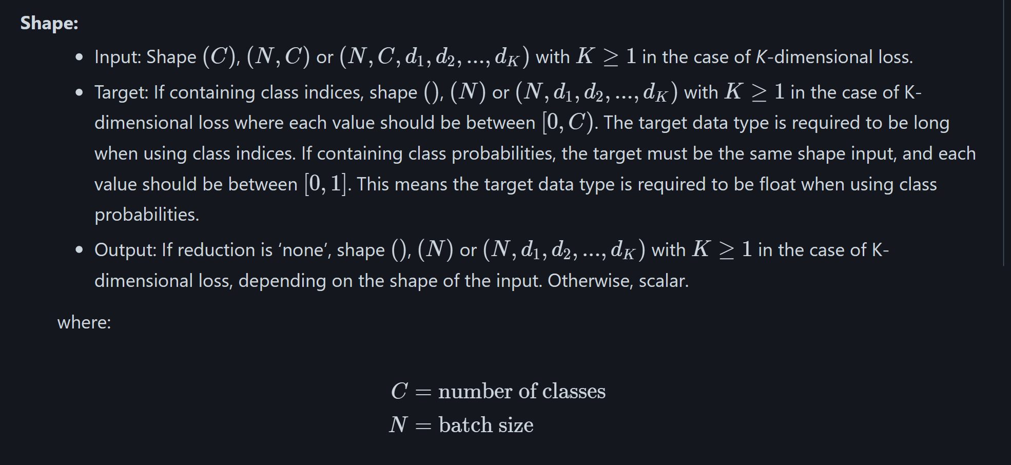 if targets isNone: loss = None else: B, T, C = logits.shape logits = logits.view(B*T, C) targets = targets.view(B*T) loss = F.cross_entropy(logits, targets)